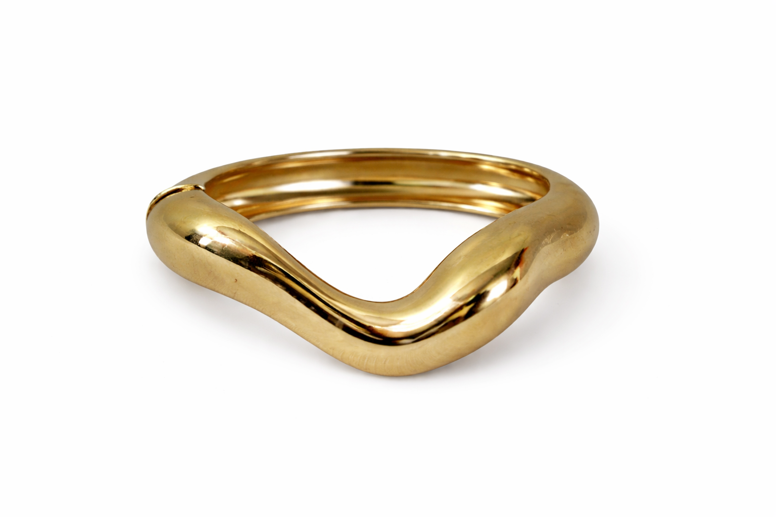 With a bold, fluid silhouette and high-polish gold finish, this sculpted cuff feels modern, powerful, and unapologetic. The smooth wave design wraps the wrist effortlessly, making it the kind of piece that turns heads without asking for attention.