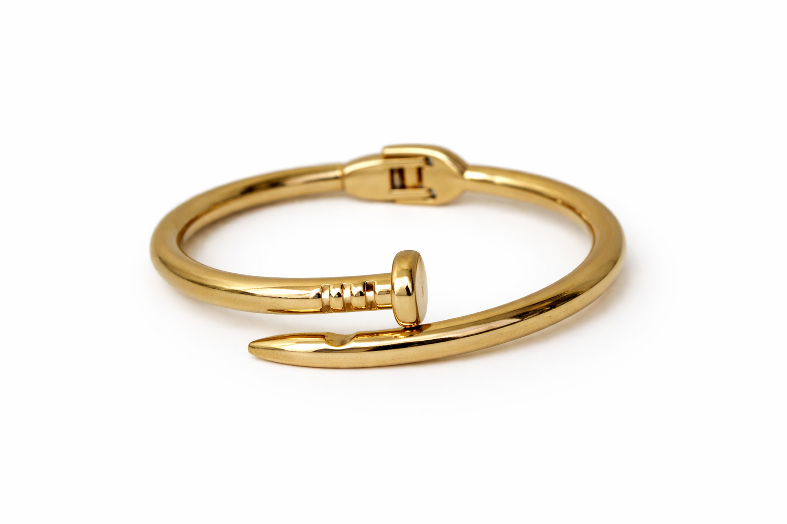 The Nail It Bracelet is a statement of strength and style. Designed in a sleek gold-tone nail silhouette, this bold cuff wraps around the wrist with effortless attitude. Perfect for street-style looks and power fits, it’s the kind of piece that speaks confidence without saying a word.